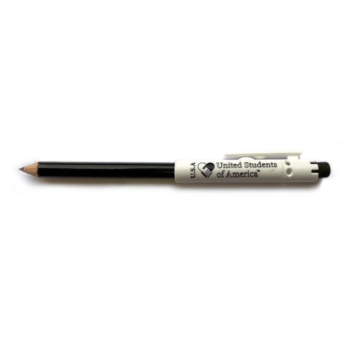 The Official Student Solidarity Campaign Pencil includes a pre-sharpened #2 pencil with an imprinted Pencil Shield with the slogan: "U.S.A. United Students of America"