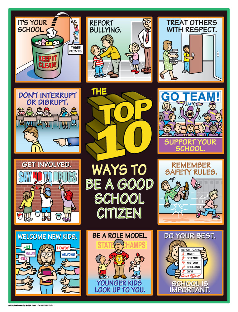 The Top 10 Ways to Be a Good School Citizen Poster